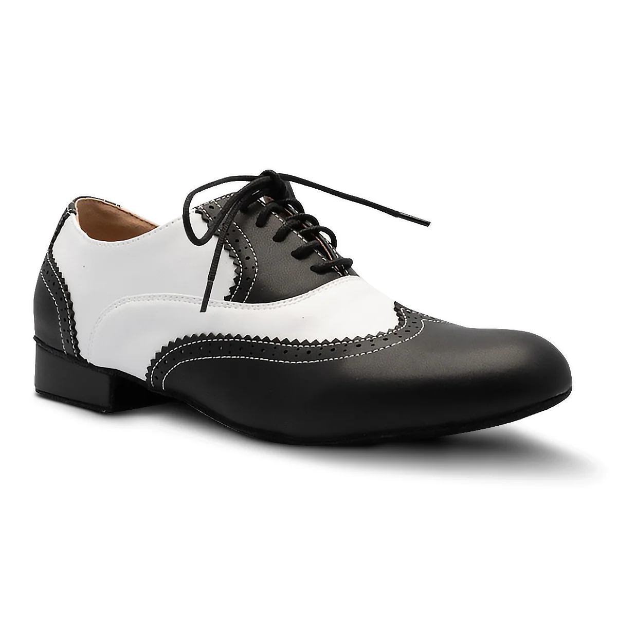 - Elevate your stage presence with the Delfin Black and White Performance Shoe. Made of top-quality, full-grain PU leather. FeaturesĀ Suede Outer Sole for easy spinning.